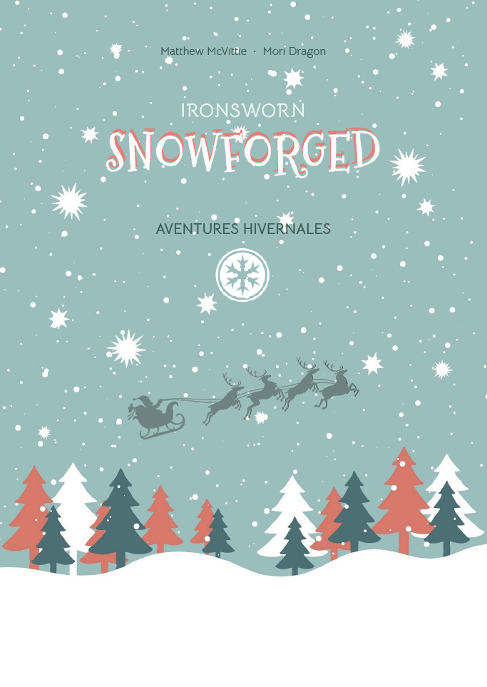 Ironsworn Snowforged : Aventures Hivernales est une adaptation simplifiée du jeu de rôle sur table (JDR) Ironsworn de Shawn Tomkin, sur le thème de Noël. Ceci en est la traduction française augmentée, que j'ai réalisée avec l'accord et la participation de son auteur, Matthiew McVittie (pour la VO de Snowforged V1.0, c'est par ici : https://mmcv.itch.io/ironsworn-snowforged).